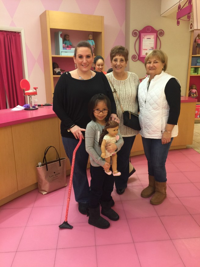 Once I finally got back to sleep last night I slept fairly well until about 9:00. I realized I wasn’t staying on top of my headache and nausea meds. So I did a better job today and was able to step out and go to the American Girl Place with Rosie. I wasn’t able to spend very long there, but I was so happy I went. She had “an amazing day” and so did we watching her.