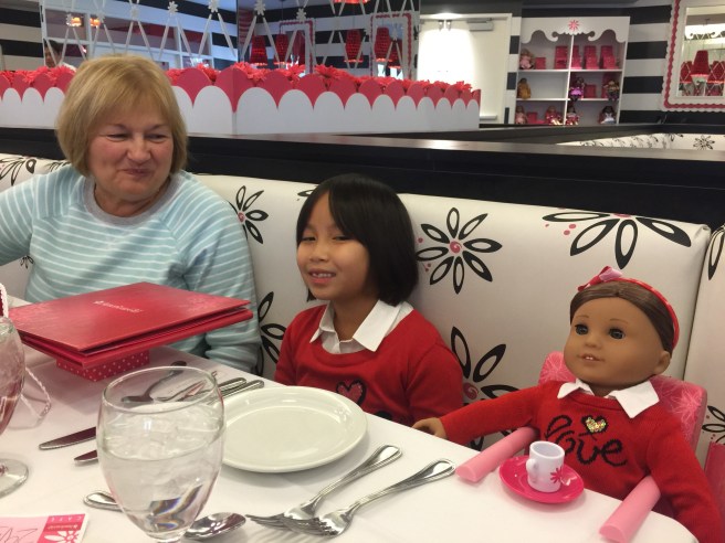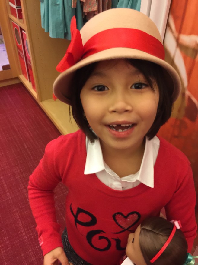 We hopped into the car service to get back to the hotel. We had an hour until Rosie’s appointment at American Girl to have her dolls hair done. It was like a mad dash to the room, change and to get to the store. But we did it.
