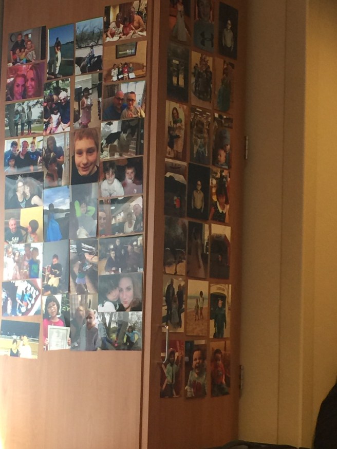 The biggest task was hanging all my pictures. My mother did the work This was a big inspiration from my bestie Jen and her hospital stay. Everyone keeps coming by to look. Lol