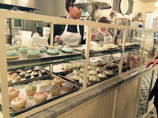 We got off and decided to get a bite to eat. We stopped at Gap kids to get Rosie some sweaters. We left the Gap, stopped to get a bite of food (no pictures… It wasn’t that good) and decide that everything we need can be bought at Walgreens. Walking there I notice a Magnolia Bakery. They are one of my favorites.. Thanks to My friend Mary who often brought Rosie and I cupcakes from their Manhattan store. OMG