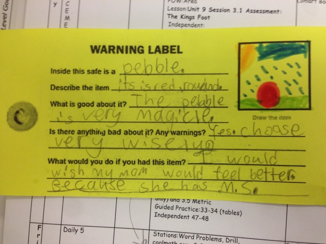 5 more sleeps until my baby is here in Chicago. I can’t wait to see her in person. I am so proud of her. She passed another speed test in math AND she has a picture that is submitted to the Young Masters Art Show. What a day for her!!! Way to go Rosemary!!!